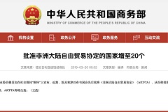 非洲大陸自由貿(mào)易協(xié)定            使批準(zhǔn)該協(xié)定國(guó)家數(shù)量增至20個(gè)