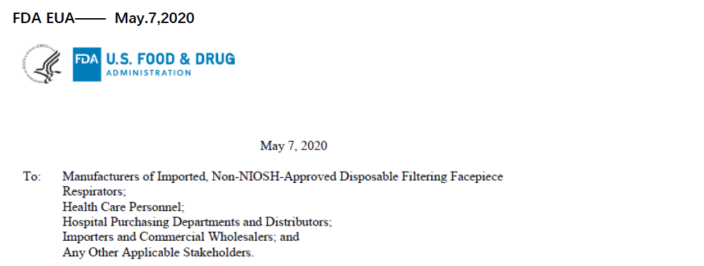 5月7日,F(xiàn)DA對曾在4月3日發(fā)布的針對中國生產(chǎn)的未經(jīng)NIOSH認證的呼吸器的EUA政策進行了修訂和重新發(fā)布。據(jù)EUA的官方FAQ說明,本次EUA重新修訂是因為附錄A中的一些呼吸器被NIOSH測試證明過濾效率不足95%。目前,大批原本已被授權(quán)并公示的口罩企業(yè)被撤銷緊急授權(quán)資格,并從授權(quán)企業(yè)名單附錄A中移除,截至小編5月8日發(fā)稿,官方公示授權(quán)企業(yè)僅剩14家。